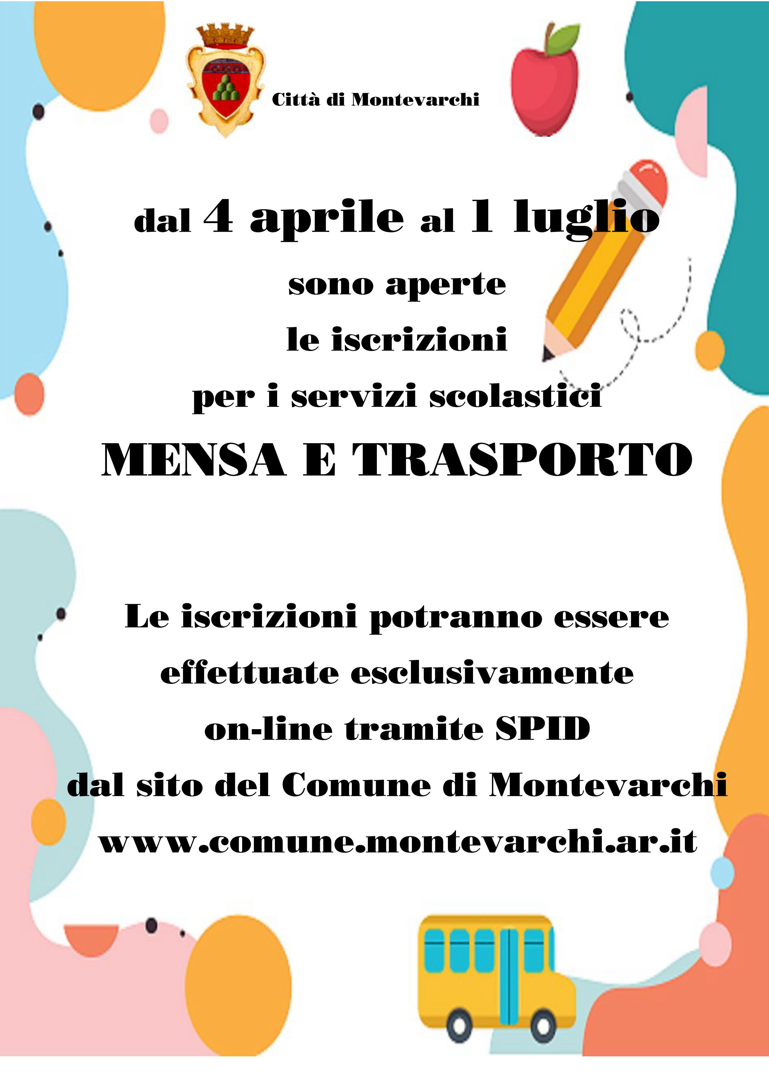 I servizi di mensa e trasporto sono rivolti agli alunni frequentanti le classi della scuola dell’infanzia, della scuola primaria e della scuola secondaria di 1° grado degli istituti comprensivi presenti nel territorio del comune di Montevarchi.