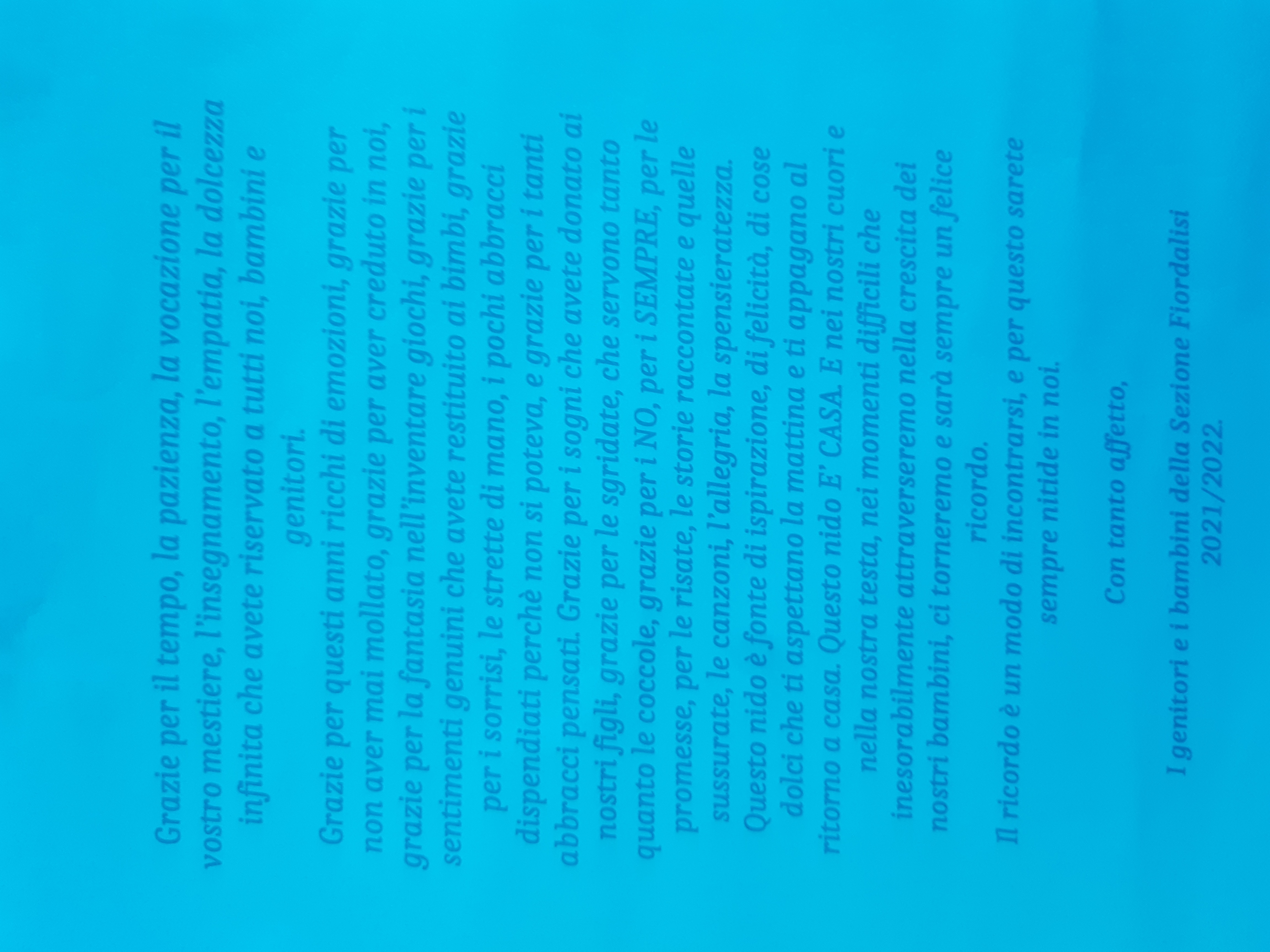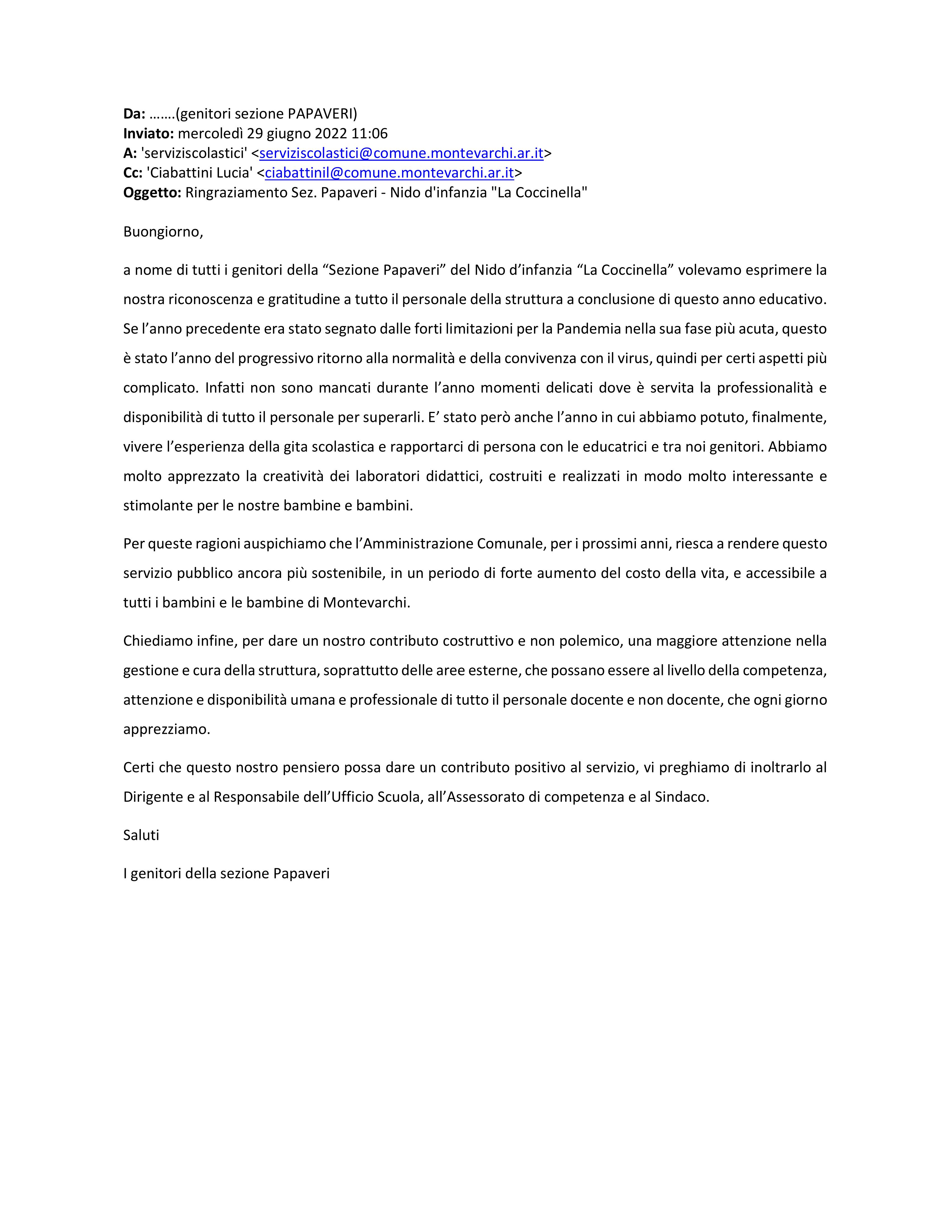 Pubblichiamo in questa sezione alcuni messaggi di riconoscenza ricevuti dai genitori sulla qualità del servizio offerto.