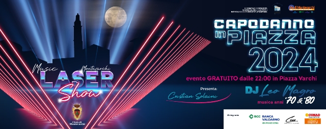 Uno spettacolo gratuito in piazza Varchi per festeggiare tutti insieme l’arrivo del nuovo anno. Per la serata del 31 dicembre il Comune di Montevarchi propone, a partire dalle 22.00, un intrattenimento per tutte le età presentato da Cristian Solaini e caratterizzato da giochi di luce laser, neve artificiale, musica anni ‘70 e ‘80 e tanto altro per creare un’atmosfera coinvolgente e di divertimento per grandi e piccini. E a mezzanotte il conto alla rovescia e il tradizionale brindisi per salutare tutti insieme il 2024.