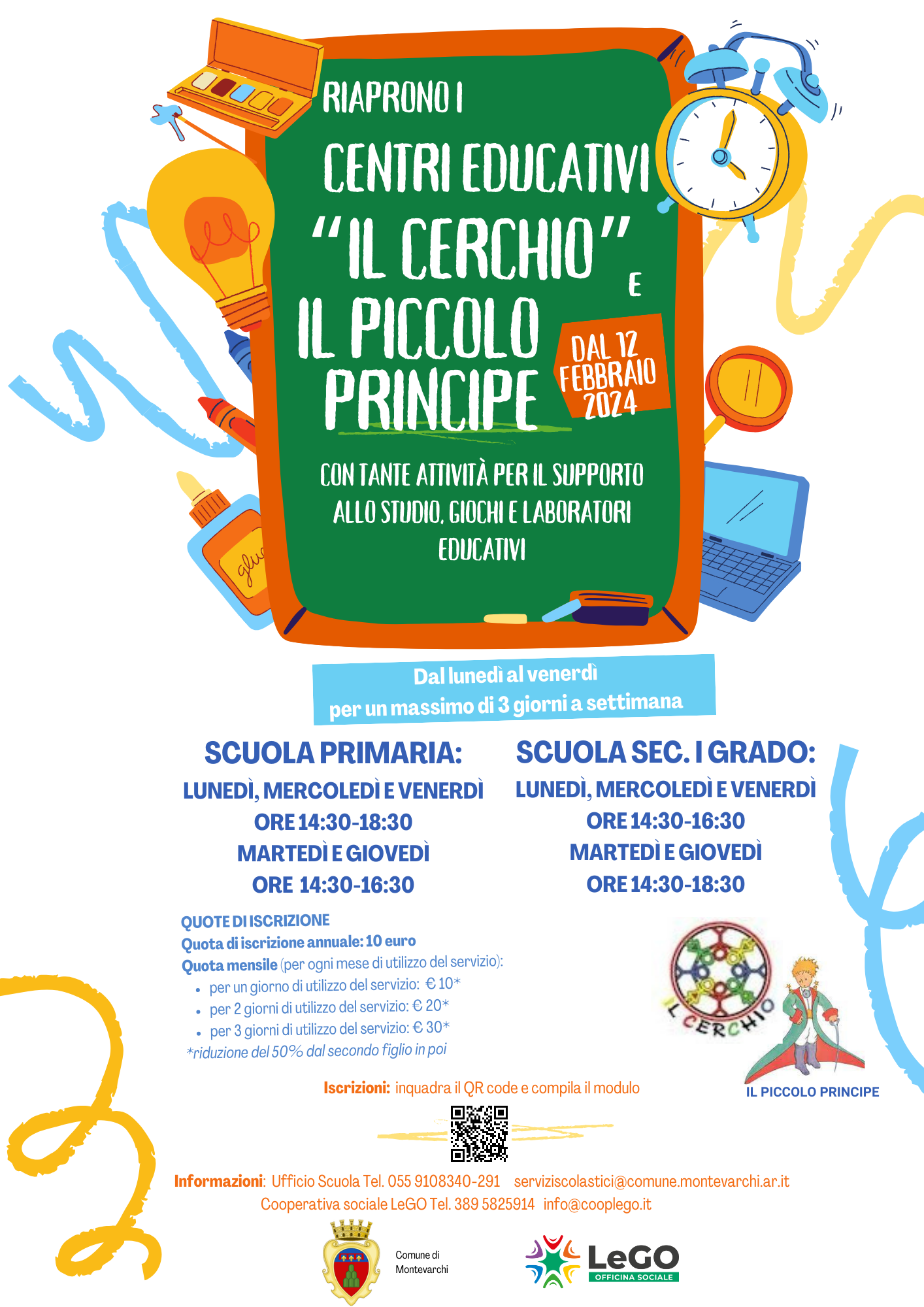 Lunedì 12 febbraio 2024 ripartono le attività dei centri socio educativi “Il Cerchio” e “Il Piccolo Principe” del Comune di Montevarchi, tenuti dalla Coop. LeGO – Officina Sociale