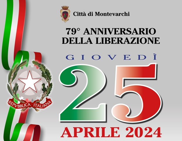 Giovedì 25 aprile, in occasione del 79° Anniversario della festa della Liberazione, si invita la cittadinanza a partecipare al programma delle celebrazioni organizzate dal Comune di Montevarchi.