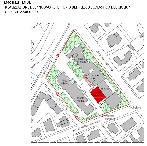 Pubblicata la gara per il “Nuovo refettorio del plesso scolastico del Giglio” dell’importo complessivo per i lavori di 765.500 euro, di cui 588.500 finanziati con fondi del PNRR.