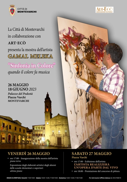 Venerdì 26 maggio ore 17.00 in palazzo del Podestà inaugurazione della mostra dell'artista egiziano Gamal Meleka, che rimarrà aperta fino al 18 giugno. Sabato 27 maggio ore 17.00 in piazza Varchi performance dell'artista. L'iniziativa ha coinvolto anche gli studenti degli Istituti scolastici cittadini.
